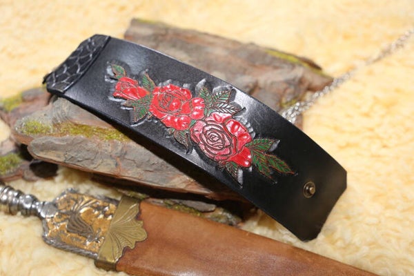 Lederarmband mit Rosenmotiv handbemalt aus Vollrindleder mit Druckknopfverschluss