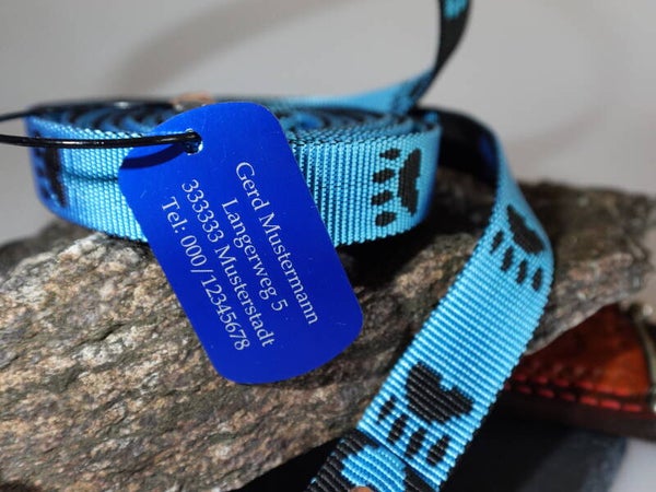 Bei jeder Leine, liefern wir ein Metallanhänger mit den ich Euch mit Adresse und Hundename Graviere. Daten bitte angeben.