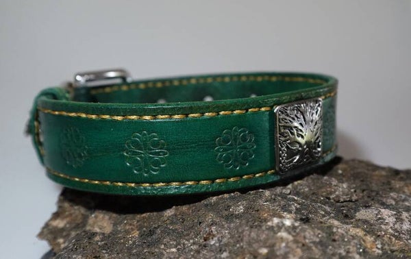 Handgefertigtes Lederhalsband mit Concho Lebensbaum