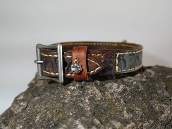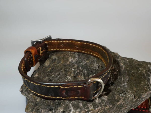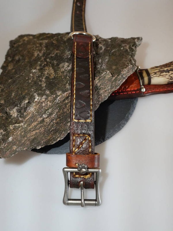 Handgefertigtes Lederhalsband mit punziertem Muster